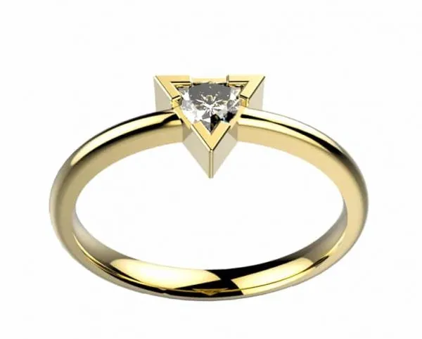 Jeune et audacieuse, la bague diamant triangle PremierBaiser offre des lignes pures, géométriques et graphiques. Il représente une version résolument moderne de la bague de fiançailles diamant. L’originalité du serti de cette bague diamant PremierBaiser met en majesté une très belle pierre de 0.15 ct taille triangle.