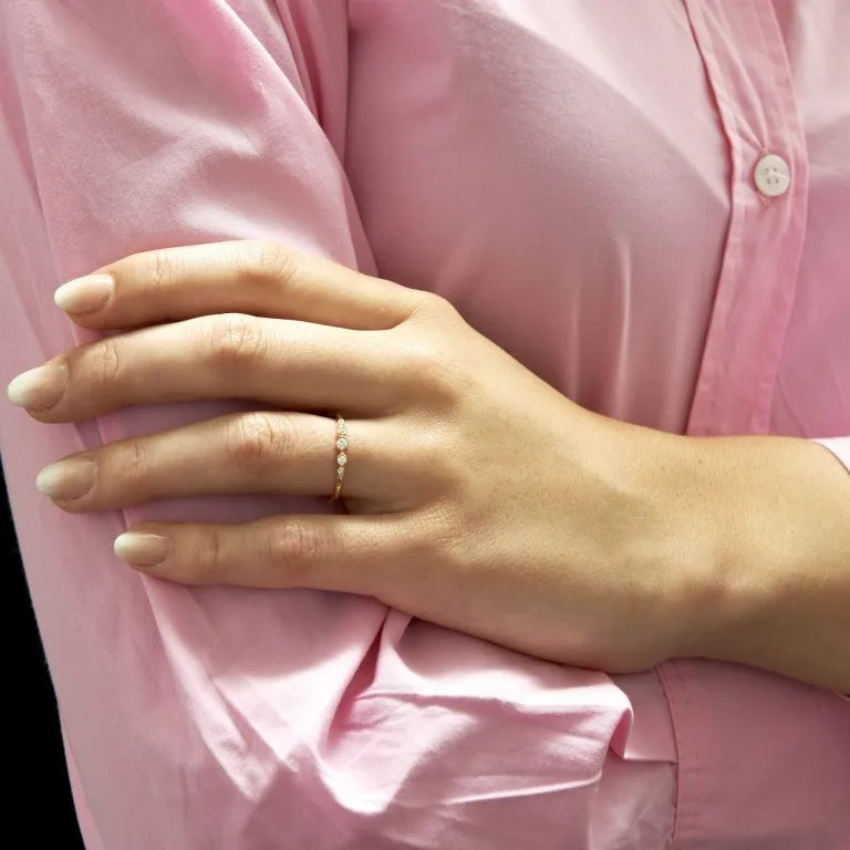 Bague diamant, témoin de l'exigeance de notre Maison pour rendre toute sa poésie à la délicatesse du serti clos - Anneau fin 1.6 mm Diamant : 5 pierres de qualité Blanc Extra +