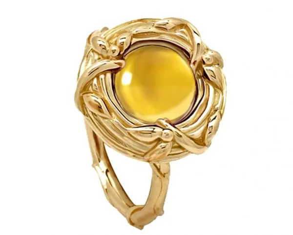 Formes organiques et bucoliques pour ce bijou serti d’une pierre taille cabochon pleine de douceur.