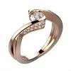 Cette bague de fiançailles en or rose présente un design moderne et élégant. Son anneau arbore une structure dynamique et légèrement torsadée, ce qui donne une impression de fluidité et de mouvement.