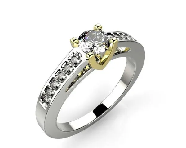 Solitaire accompagné : descente de 14 diamants naturels 0.01 ct F / VS – Poids pavage : 0.14 ct